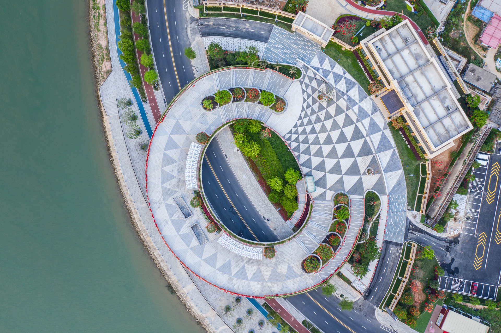 廣東省城鄉(xiāng)規(guī)劃設(shè)計(jì)研究院有限責(zé)任公司整體規(guī)劃在三江匯合處,建筑物回退形成廣場(chǎng),并于此架設(shè)了城市陽臺(tái),通過精心設(shè)計(jì),以不同紋理的石材鋪裝,新穎的遮陽棚及坐凳、綠化的設(shè)置使之成為江門城鄉(xiāng)綠廊最出彩的節(jié)點(diǎn);城市陽臺(tái)的后端,以精美的商業(yè)會(huì)所作為前部空間的收束,并與其后的板式樓王,形成一條空間景觀軸。