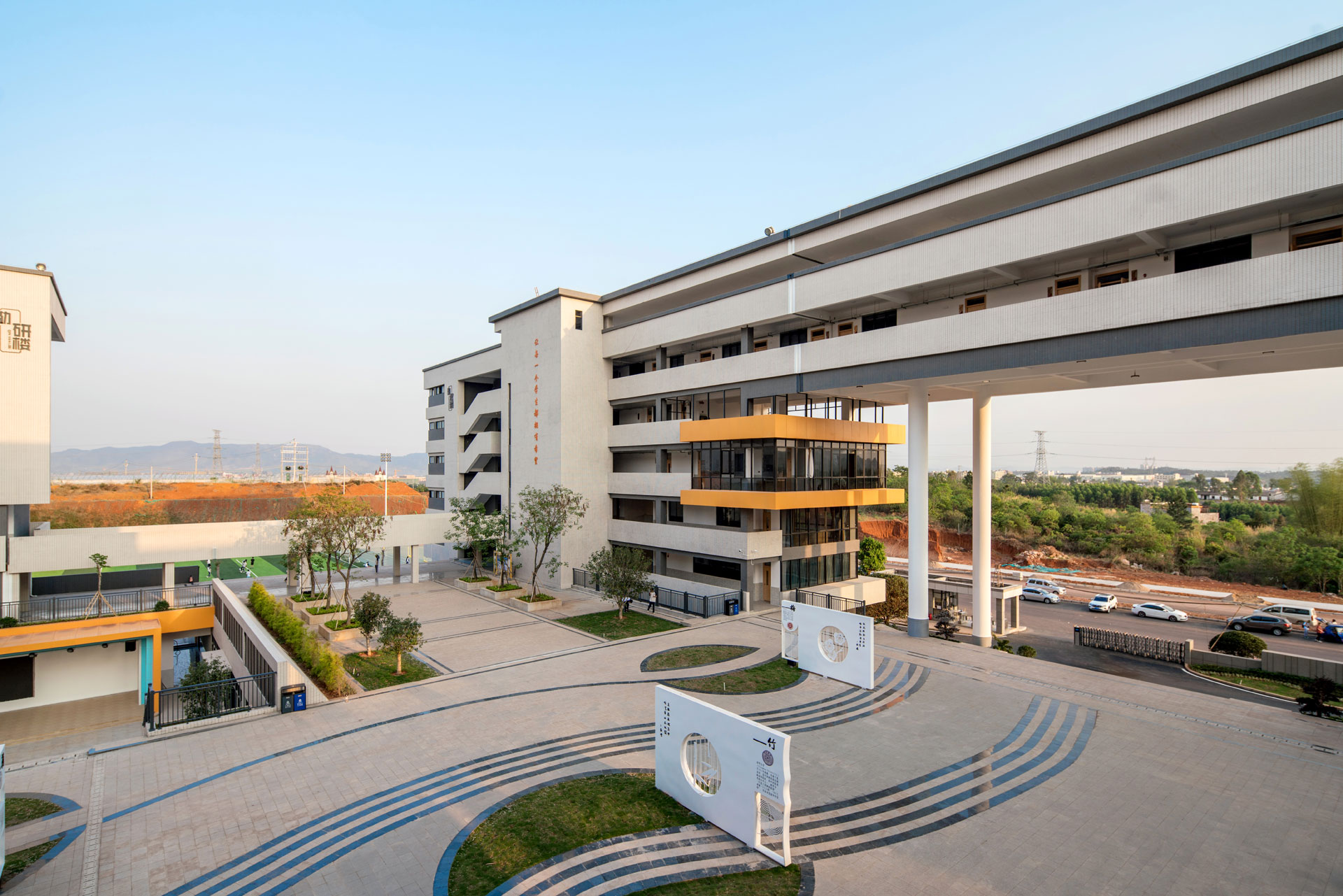 廣東省城鄉(xiāng)規(guī)劃設(shè)計(jì)研究院有限責(zé)任公司河源市黃岡實(shí)驗(yàn)中學(xué)位于廣東省河源市源城區(qū)龍嶺五路附近。用地面積37295 平方米,班數(shù)60 班。校園功能分區(qū)明確,利用高差設(shè)置功能性的大空間,創(chuàng)造變化的交流空間來(lái)增加學(xué)生在課余時(shí)間交流的可能性,運(yùn)用標(biāo)志性的立面元素形成項(xiàng)目特色。