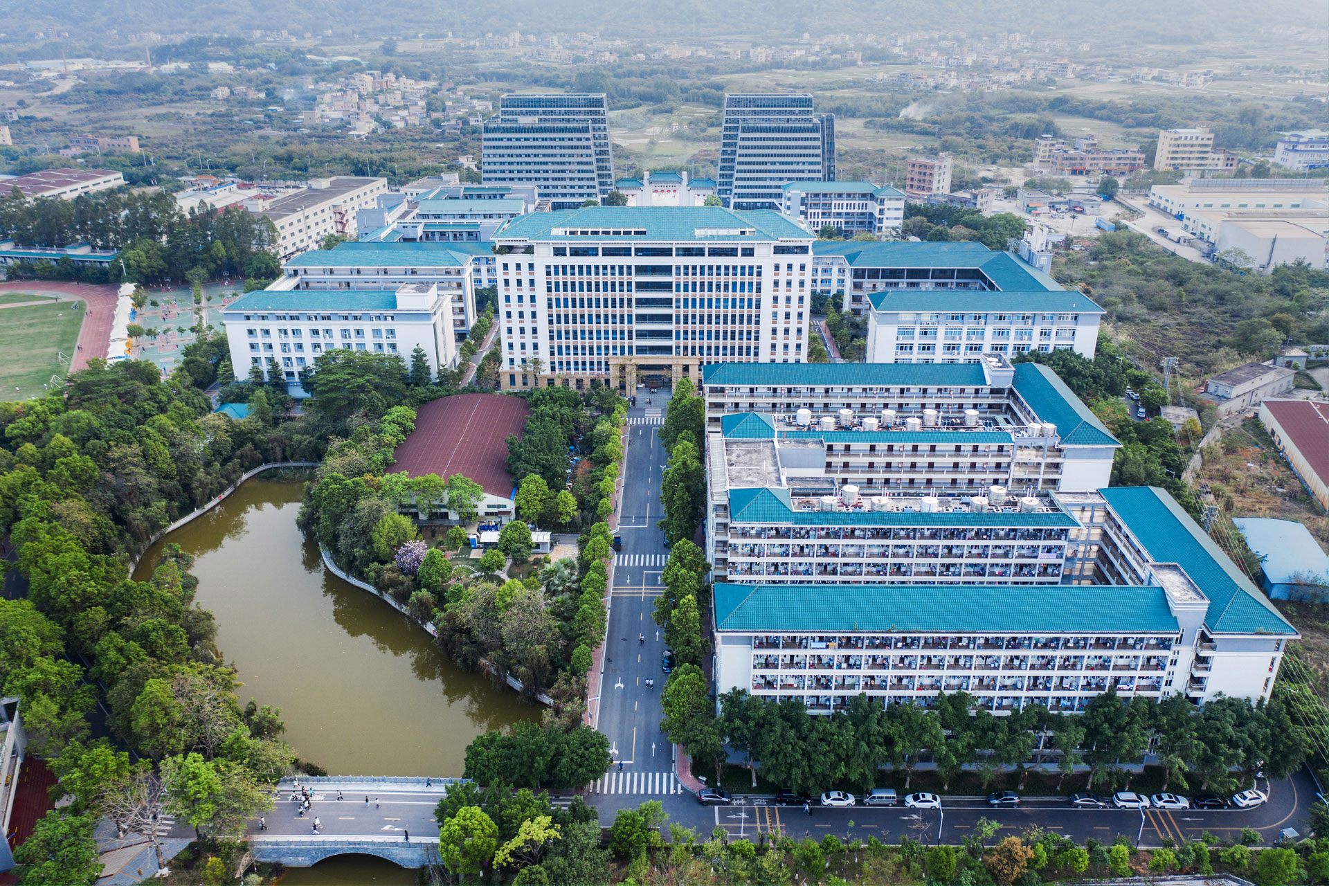 廣東省城鄉(xiāng)規(guī)劃設計研究院有限責任公司項目位于廣州市從化區(qū),毗鄰京港澳高速,大廣高速。學校環(huán)境優(yōu)雅,四季如畫。 校園建筑吸取嶺南建筑之精華和神韻,粉墻黛瓦搭配和諧,亭臺樓榭錯落有致, 湖光山色處處皆景,以及完善的生活和教學設施等,讓每一個親臨者流連忘返, 贊譽有加。用地面積52.5 萬多平方米,建筑面積19.7 萬多平方米,教學行政用 房11.3 萬多平方米。